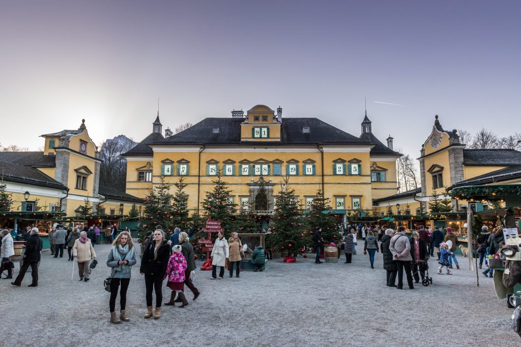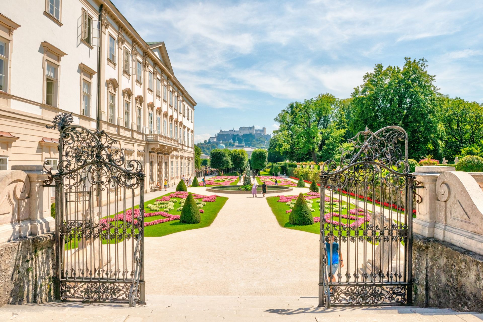 A baroque villa known for its whimsical trick fountains, beautiful gardens, and the nearby Hellbrunn Zoo.